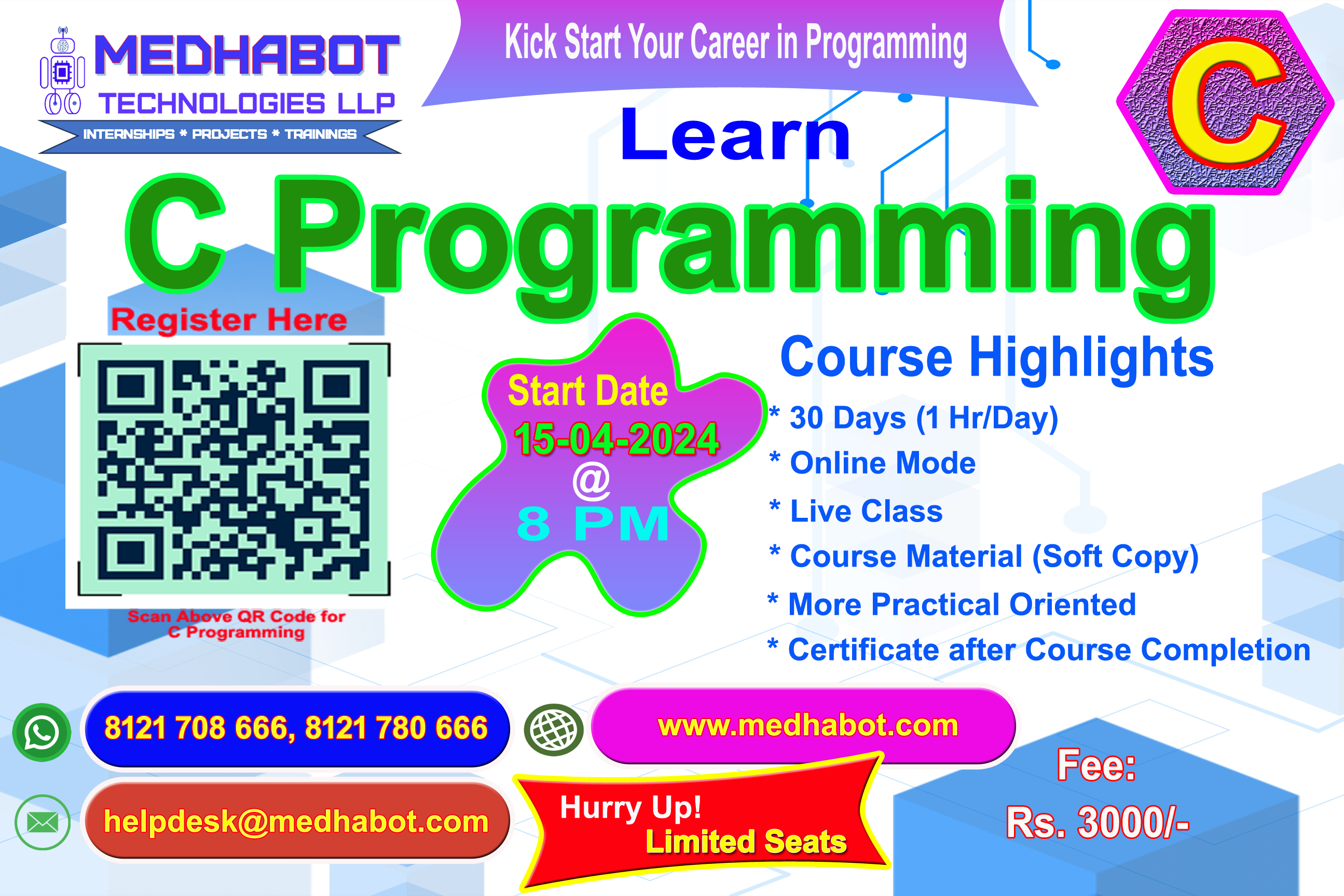 Medhabot Technologies LLP is an IT Training institute founded in 2023 with the aim to deliver quality Training and Internships to Under Graduate Degree and Engineering Students in the areas of trending technologies like AI, ML, IoT, Data Science, Data Visualizations.
